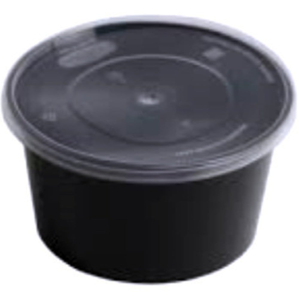 زبدية بلاستيك دائرية للمايكرويف أسود 450 مل مع غطاء مسطح منفصل - 250 حبة