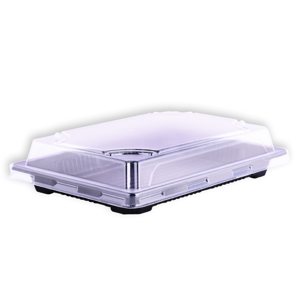صحن بلاستيك مستطيل بغطاء شفاف منفصل رقم CH001 مقاس 16 × 11 × 4 سم أسود - 500 حبة