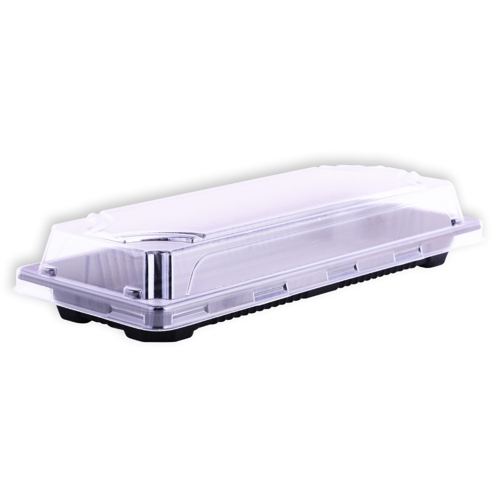 Rectangular plastic plate with a separate transparent cover, No. CH006, size 22 x 9 x 4 cm, black - 460 pieces